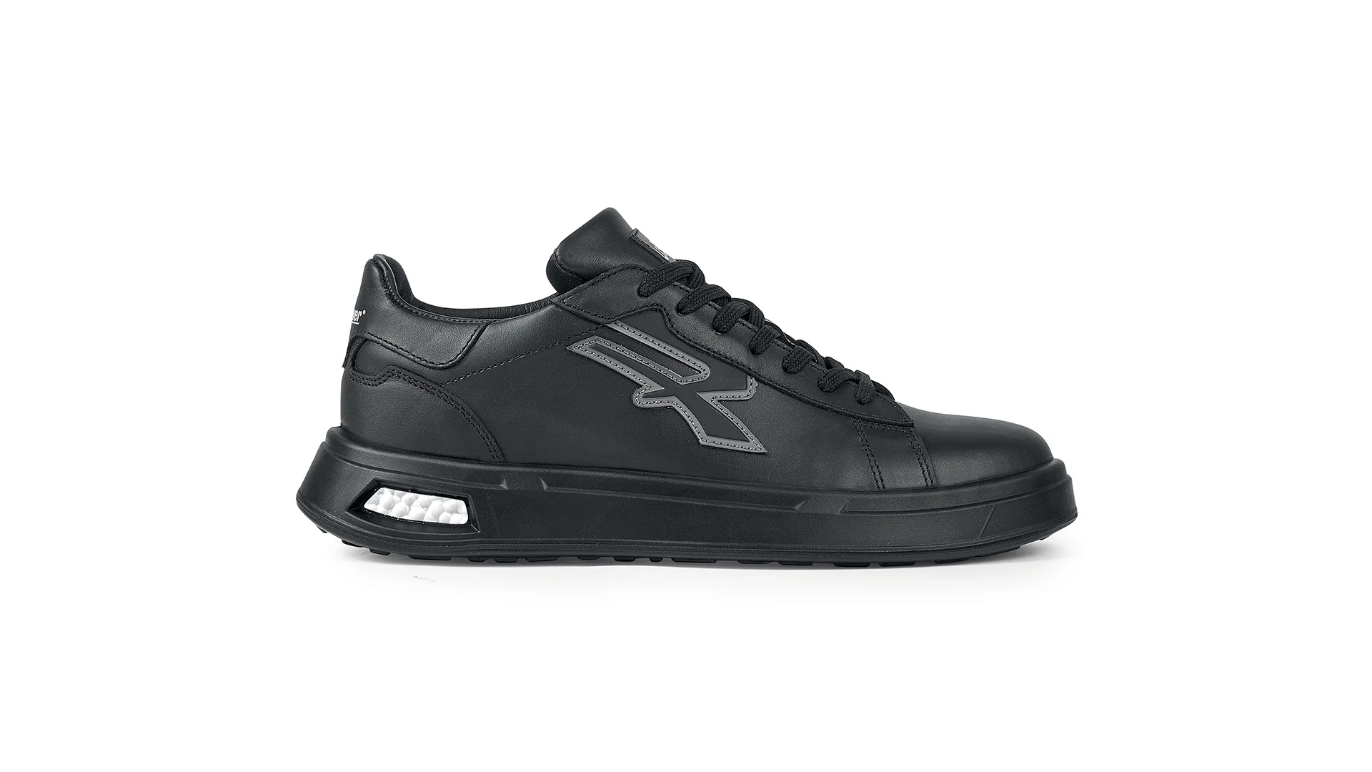 Fabriquée entièrement en cuir noir souple, de la tige à la doublure intérieure, Barry est dotée d’une semelle certifiée antidérapante avec insert en Infinergy®.