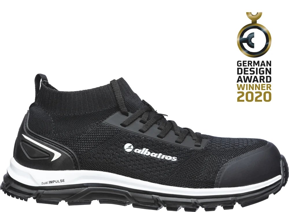 La chaussure de sécurité pour hommes Albatros ULTIMATE IMPULSE BLACK LOW séduit non seulement par une fonctionnalité exceptionnelle, mais également par son design jeune et moderne et son confort unique. Avec son empeigne attrayante en tricot noir et son col souple ELASTIC FIT, il a non seulement l'air sportif, mais s'adapte également parfaitement au pied et offre une liberté de mouvement ultime. Le siège sur la jambe en forme de chaussette vous protège de manière optimale contre la pénétration de poussière, de saleté ou de petites pièces. Une traction sur le talon facilite le démarrage.