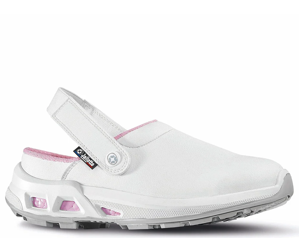 Sabot de travail souple et léger, sans embout ni semelle anti-perforation conçu avec une technologie anti-fatigue. Tige et semelle assemblées en France. Coloris blanc et bleu. Chaussures électrostatiques dissipatrices ESD de classe environnementale II testées suivant la norme EN 61340-4-3 et EN 61340-5-1 protégeant les dispositifs électroniques contre les phénomènes de décharge électrostatique.