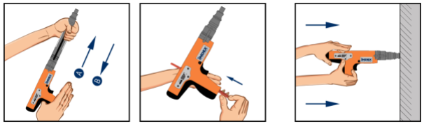 Pistolet à poudre semi-automatique avec piston et régulateur de puissance. Permet l’enfoncement rapide et précis de clous de 8 mm dans des matériaux tels que le béton ou le métal. Il offre un faible recul et dispose d’un silencieux intégré.