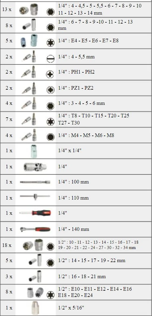 - Une panoplie d'outils indispensable pour la mécanique. Ce coffret reste un basique pour tous les bricoleurs qu'ils soient amateurs ou professionnels.