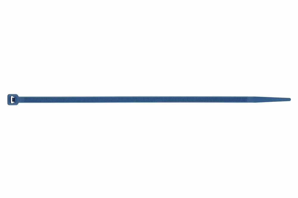 Serre-câble en nylon détectable, de couleur bleue. Sa composition incorpore des particules métalliques qui lui permettent d’être identifié par les détecteurs de métaux ou les appareils à rayons X. Il est spécialement conçu pour répondre aux exigences de la méthodologie HACCP / HACCP dans les industries telles que l’alimentaire, la cosmétique ou la pharmacie. Il peut être installé rapidement et facilement.