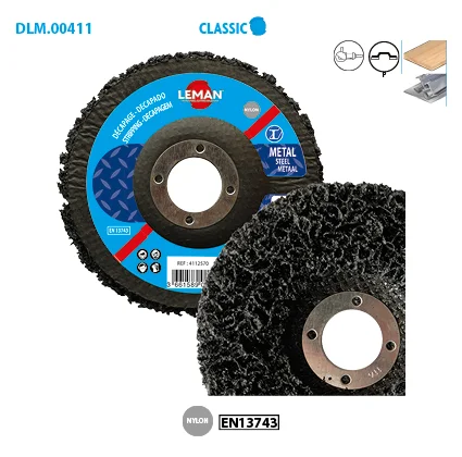 Disque nylon plat. Résine au carbure de silicium sur plateaux fibre de verre. Pour nettoyer, poncer et polir toutes les surfaces (acier, bois, rouille, colle).