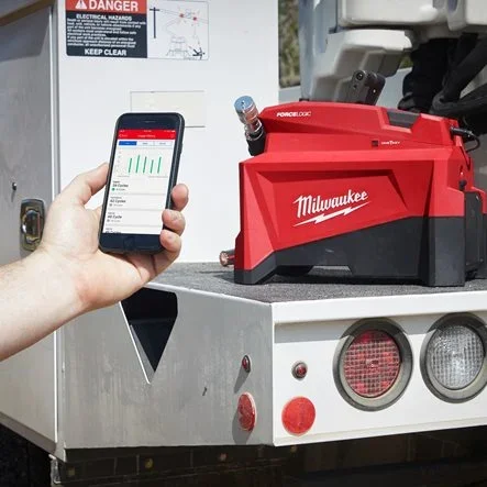 - La pompe hydraulique FORCE LOGIC™ fournit une puissance de 700 bar pour sertir, couper ou adapter différentes têtes.