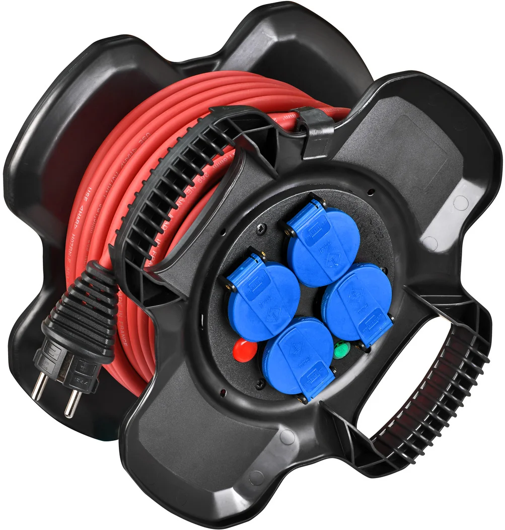 BRENNENSTUHL - Enrouleur de câble compact X-GUM 4 prises avec clapets bleus - H07RN-F 3G2,5 10m