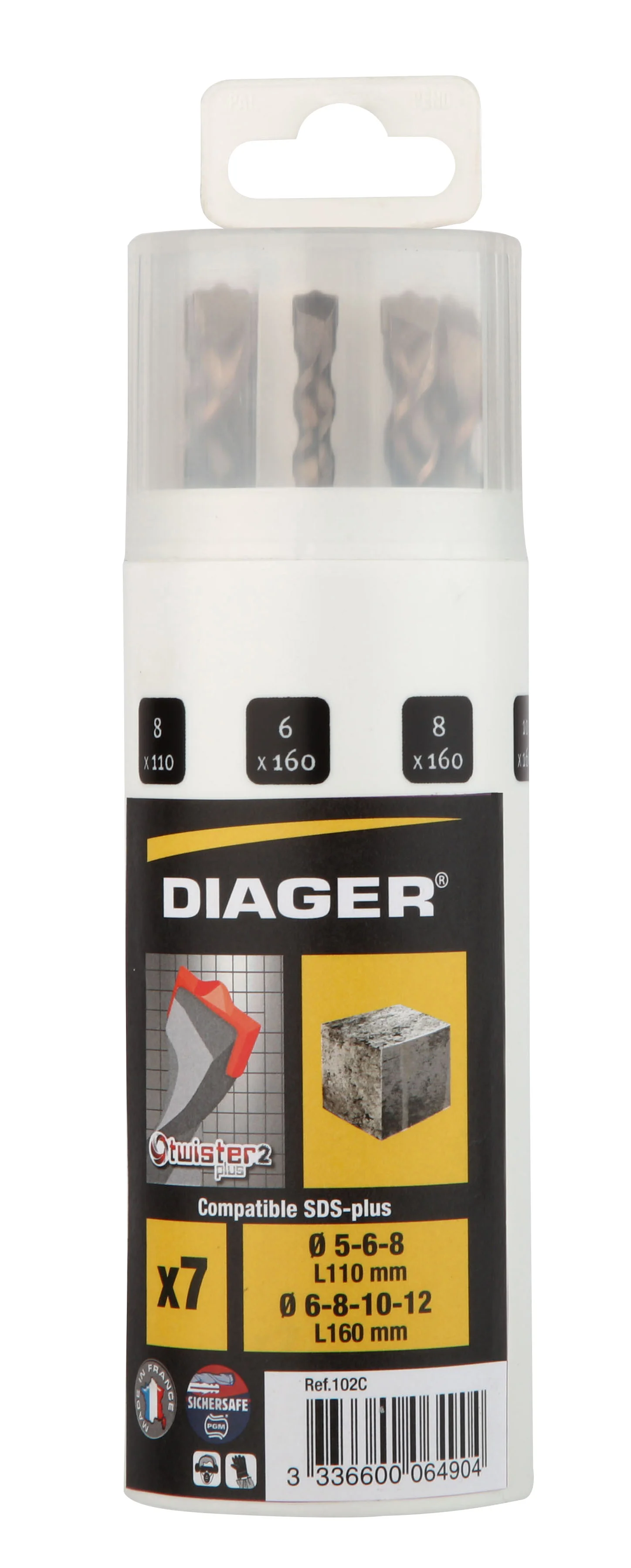 DIAGER - Coffret 7 forets béton TWISTER 2 taillants SDS plus - 102C