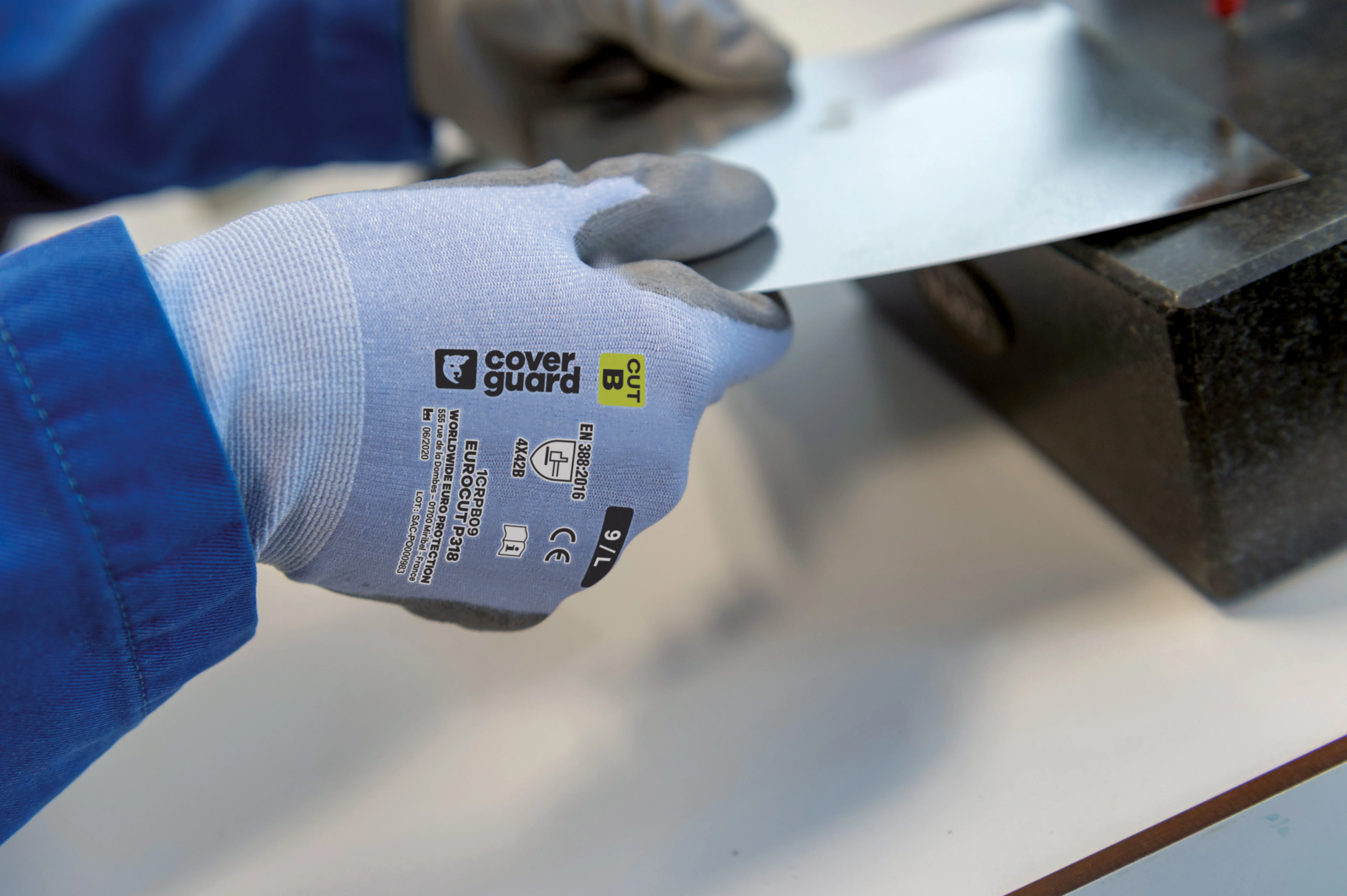 COVERGUARD - Lot de 5 paires de gants anti-coupure EUROCUT P318 - Enduit PU Bleu