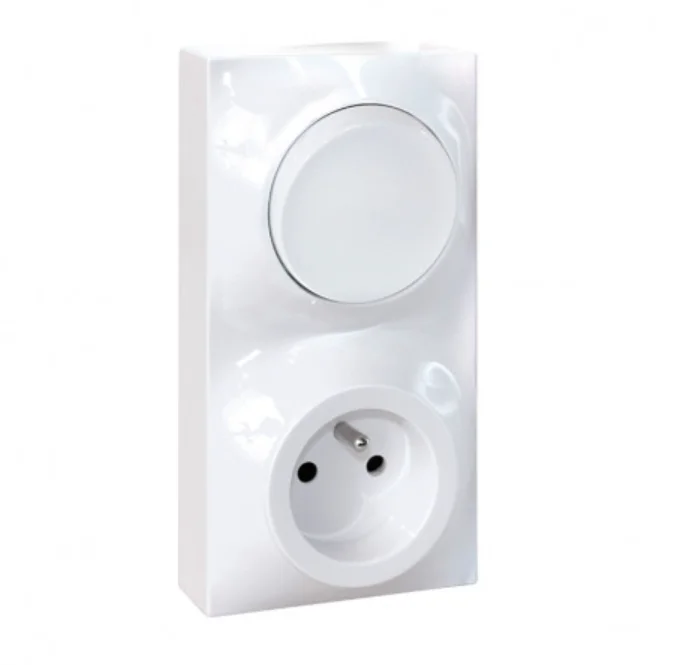 EUR'OHM - Prise PC 2P+T + va et vient vertical - Blanc - Dune