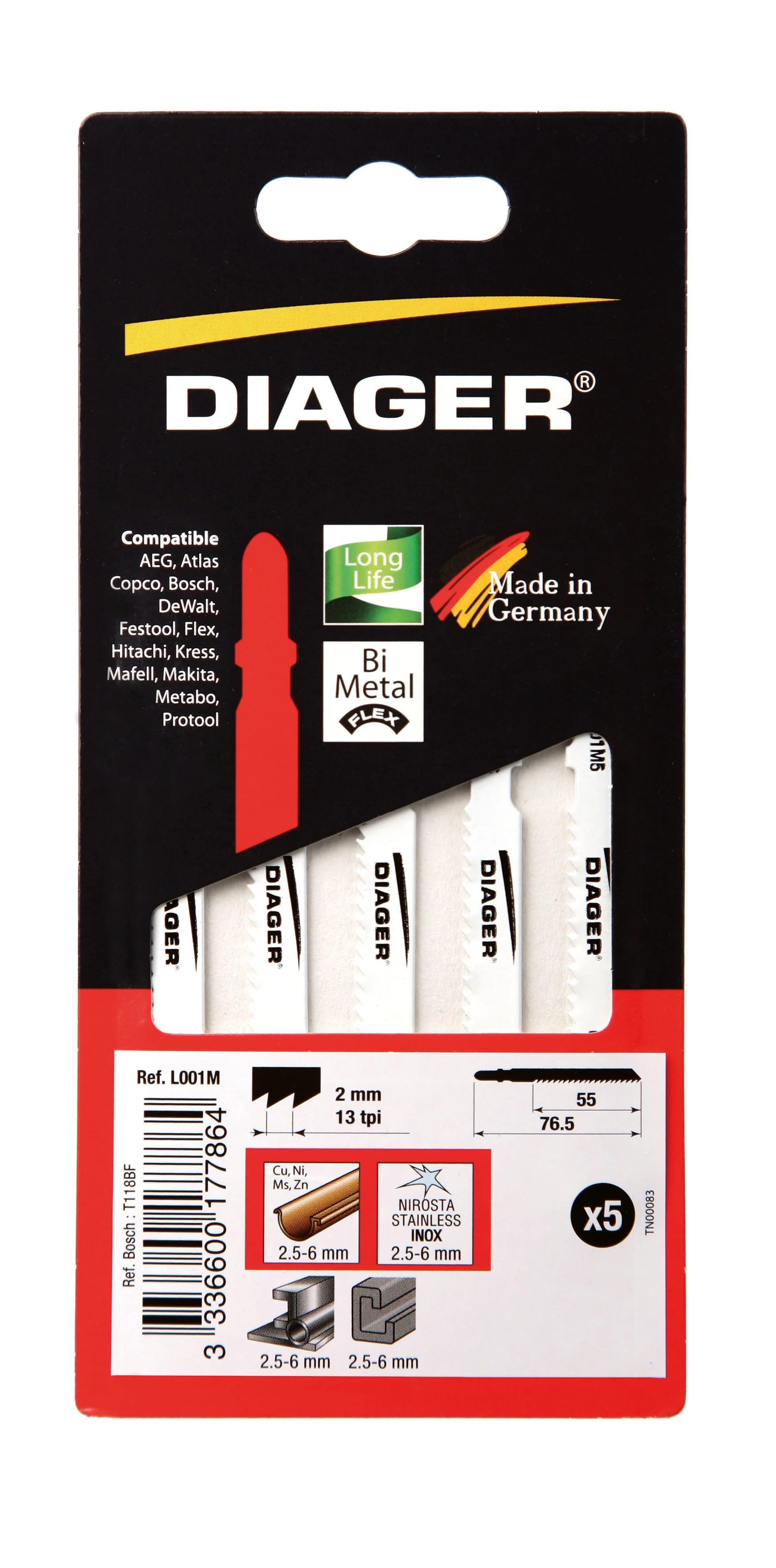 DIAGER - Lames scie sauteuse pour materiaux fins - L001M