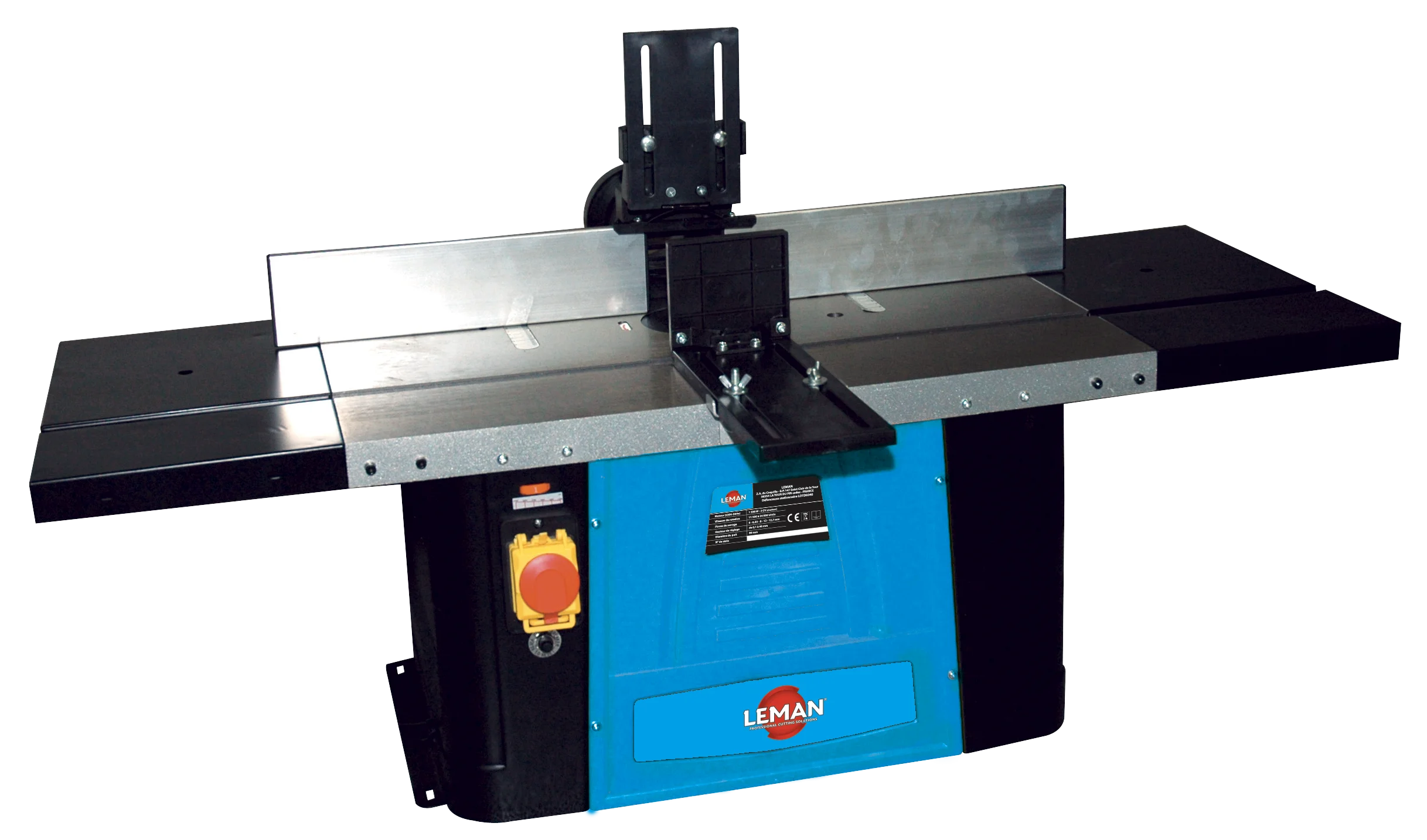 Machine transportable, idéale pour les chantiers et le travail sur site. Machine d’appoint combinant la facilité d’utilisation d’une défonceuse et le confort de travail d’une toupie. Socle percé permettant la fixation de la machine sur un piètement ou un établi. Table en fonte d’acier avec rallonges en tôle mécano-soudée. Guide en profilé aluminium réglable en profondeur, presseurs vertical et horizontal, capot de protection transparent et sortie d’aspiration Ø 100 mm. Guide d’onglet réglable à ± 60°. Hauteur de fraisage réglable par manivelle, variateur de vitesses électronique.