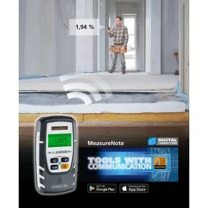 L'humidimètre professionnel pour matériaux permet de déterminer de manière non destructive l'humidité des matériaux de 56 types de bois et de 6 types de matériaux de construction grâce à un procédé de mesure capacitif. Grâce à l'affichage LED, l'utilisateur obtient des informations immédiates sur le degré d'humidité ou de séchage. Si un matériau humide est détecté, un signal d'alarme clair retentit. Dès que la valeur mesurée est stable, elle est maintenue à l'écran par la fonction Auto-Hold. En mode CM, l'évaluation de l'humidité des matériaux de la chape en ciment et de la chape anhydrite s'effectue en % CM, en comparaison avec la méthode de mesure au carbure de calcium. Le mode Index permet de détecter l'humidité rapidement et indépendamment du matériau. Le mode Index-Zoom permet de suivre l'évolution du séchage de matériaux de construction durs comme la chape ou le béton. L'utilisation est extrêmement simple : après avoir choisi le matériau, il suffit de poser l'appareil sur la surface à contrôler. Pour une documentation optimale, les données de mesure peuvent être transmises à l'application MeasureNote via l'interface Digital Connection. Parmi les autres avantages, on peut citer l'affichage matriciel bien lisible et la représentation du système de menu et des noms de matériaux en 22 langues. Après une courte période d'inactivité, l'appareil s'éteint automatiquement pour économiser de l'énergie.