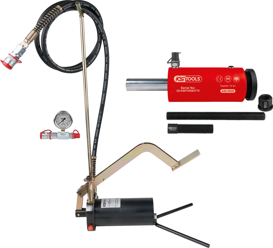 KS TOOLS - Unité hydraulique 32 t avec pompe et manomètre, 11 pcs