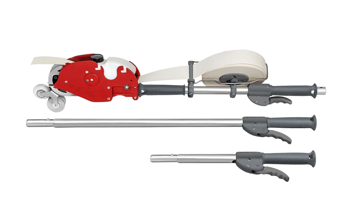 Le RollCut' est livré sous forme de valise de transport avec ses 2 rallonges en aluminium avec des poignées en caoutchouc.
