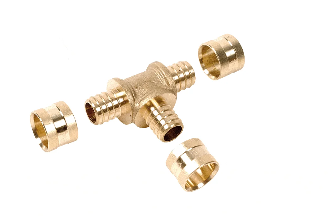 Raccords métalliques à glissement en laiton, pour tubes en matériaux de synthèse en PEX ou PB.