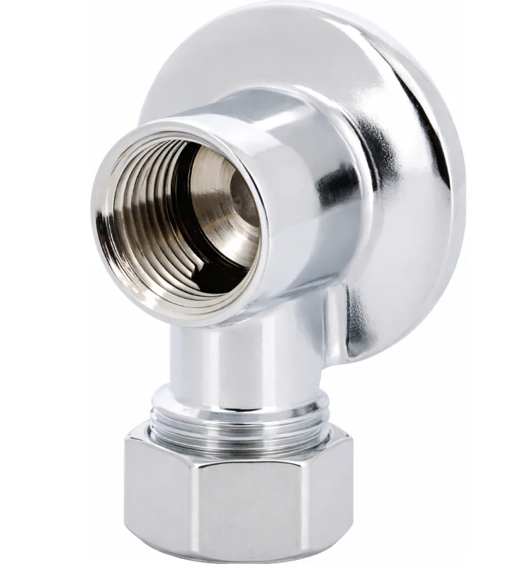 Applique murale laiton chromé lourde avec écrou Série 1347 pour les réseaux d’eau froide ou eau chaude avec écrou pour raccorder directement le tube cuivre D12, permet le montage mural et le raccordement de robinetterie sanitaire, F1/2".