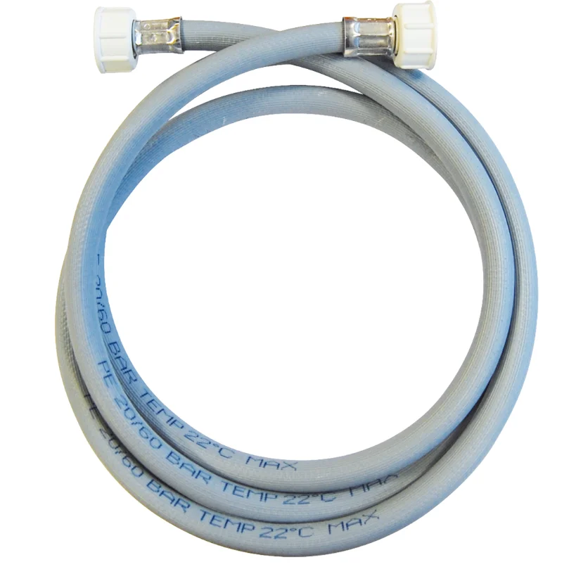 Flexible d’alimentation pour machine à laver sortie droite Femelle - Femelle DN3/4" BSP Série 1373, tuyau caoutchouc diamètre intérieur 10 mm avec embouts plastique.