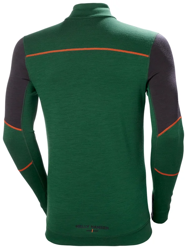 HELLY HANSEN - Sous-vêtement de travail technique ras de cou en laine demi zippé LIFA - Vert