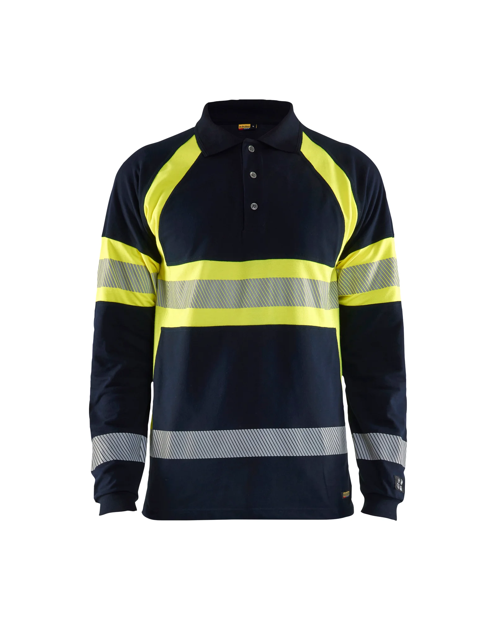 BLAKLADER - Polo de travail piqué manches longues multinormes - Marine/Jaune fluo